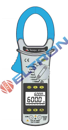 Alicate Amperímetro /Megômetro CAT III / Modo INRUSH /Filtro de Alta frequência (HFR) ET3890 MINIPA