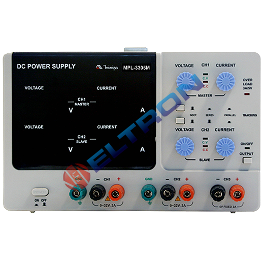 Carregando...Equipamento digital de bancada, com quatro displays de 3 dígitos (tensão e corrente para cada canal), capaz de fornecer duas saídas variáveis com tensão de 0 a 32V DC e corrente de 0 a 5A DC e uma saída fixa com tensão de 5V e corrente de 3A DC. Possui ajuste de tensão e corrente por potenciômetro multivoltas, tecla para habilitar a saída de tensão além de proteção de sobrecarga e inversão de polaridade e a duas saídas variáveis podem ser ligadas em série ou paralelo através do painel frontal.