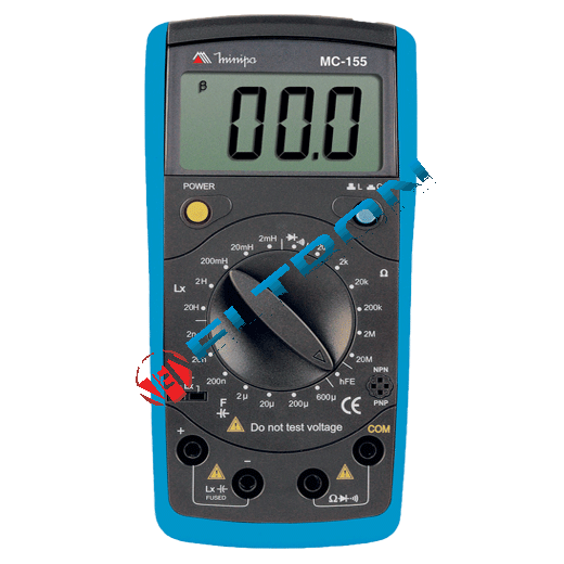 Carregando...Instrumento digital portátil com display LCD de3 1/2 dígitos, mudança de faixa manual. Realiza medidas de indutância, capacitância, resistência, Teste de transistor PNP e NPN, teste de continuidade e Diodo.