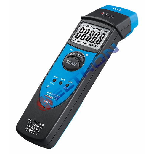 O instrumento utilizado para medições de RPM e Temperatura de motores automotivos. Possui display com iluminação de fundo e as funções de alarme, registro e memória para até 300 medidas.